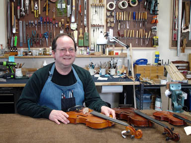 violin shop, servicing stringed instruments of all shapes and sizes.